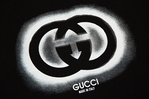 GUCCI 黒のコットンプリントクルーネックTシャツ