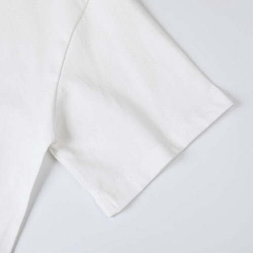 高品質ヘビーウェイトダブルツイスト 280g/32 番手、さらっとした滑らかなコットン 100%ウォッシュ加工仕上げ。前後身頃には高級ストーンプレス加工を施し、生地は柔らかく肌触りが極めて良好です。
