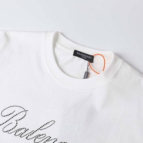 Balenciaga26SS 春夏ラインストーン半袖Tシャツ